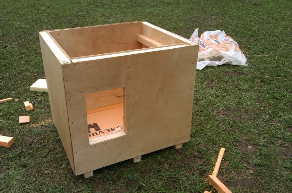 Eve küçük bir kontrplak kulübesi yerleştirilebilir. Çatı imalatı ile uğraşmamak için ürünü giriş deliği olan normal bir kutu şeklinde yapabilirsiniz. Ancak üçgen çatılı bir ev elbette çok daha ilginç görünecek.