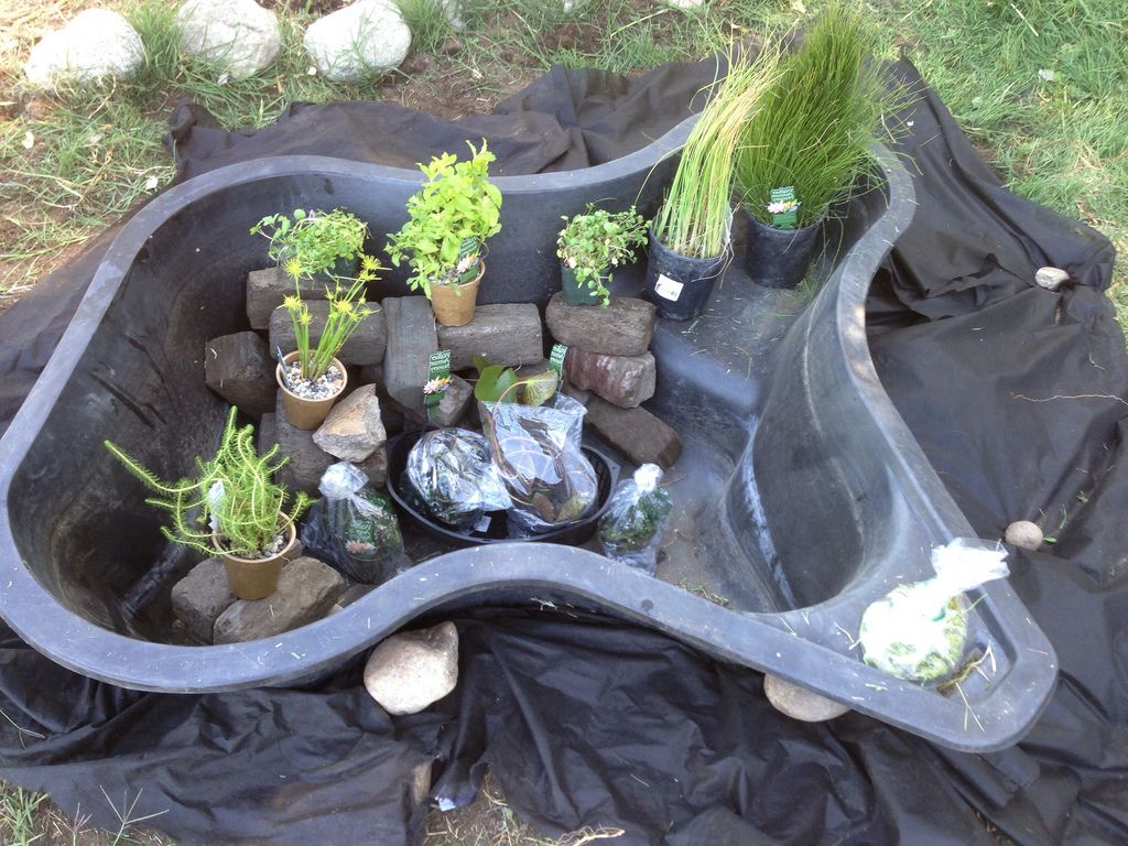 - Bitmiş taban su ile doldurulur. Bir daire içinde, oluklara su bitkileri ekilir.