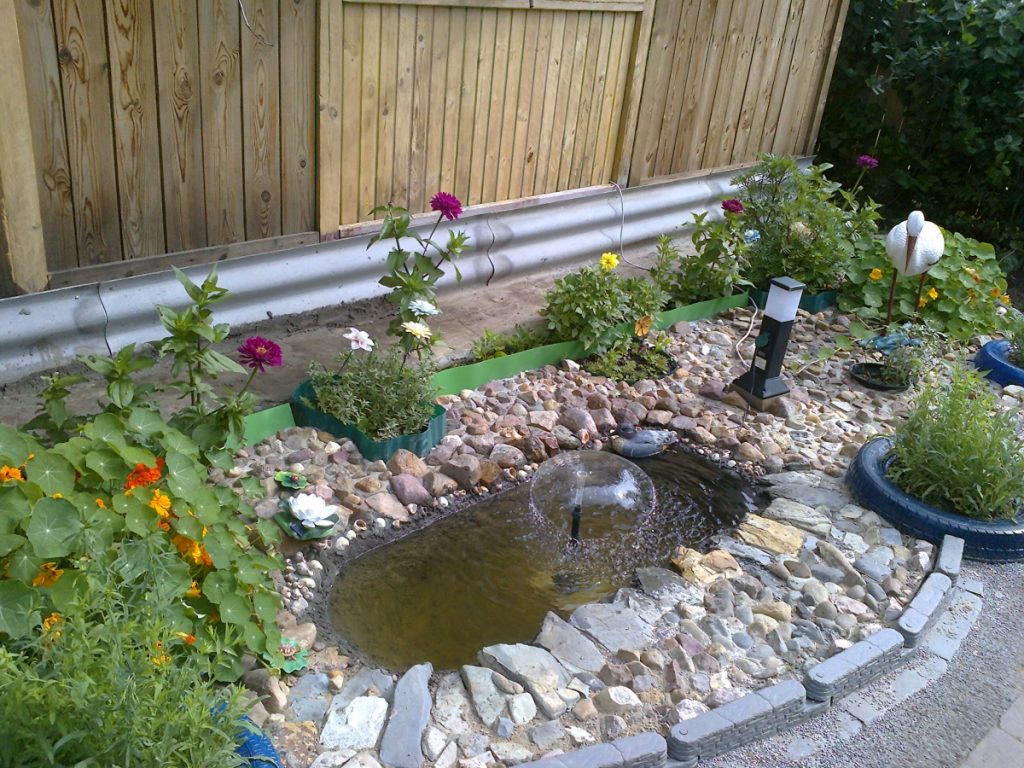 Aslında, dekoratif bir rezervuar oluşturmak için artık tarıma uygun olmayan herhangi bir kap temel olarak kullanılabilir. Örneğin, eski bir banyo.