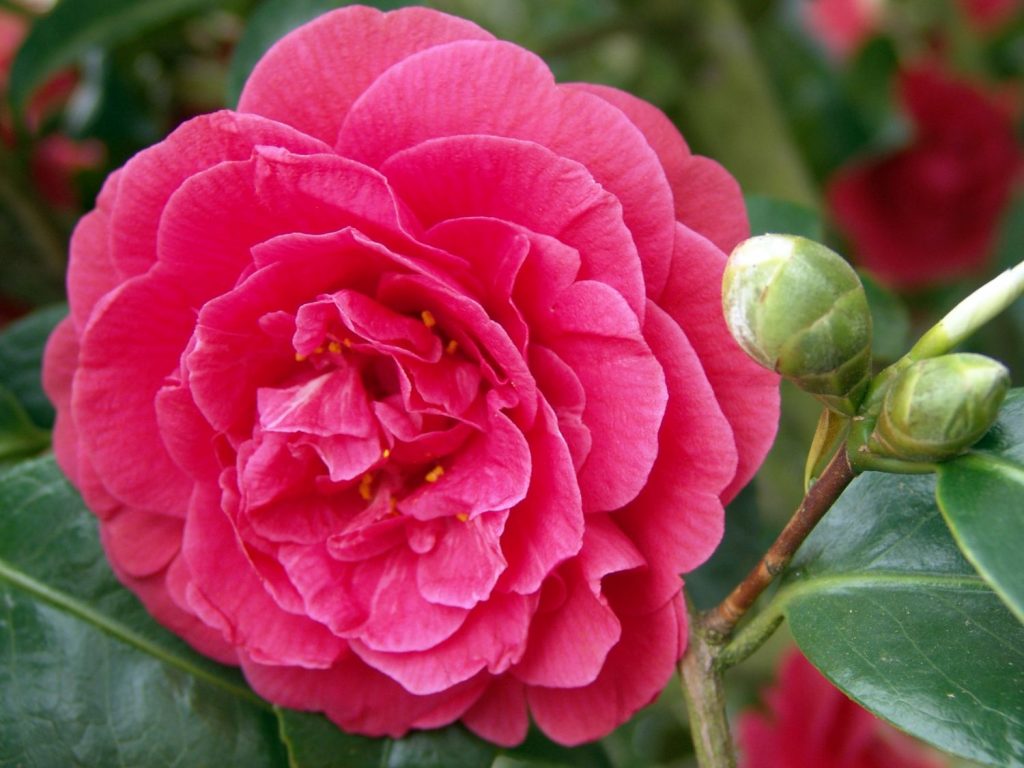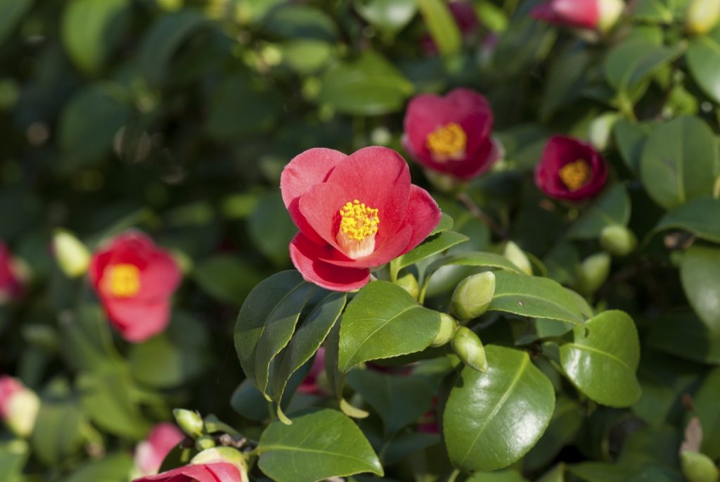 Camellia japonica, Çay ailesinin bir bitkisidir. Anavatanı Güneydoğu Asya'dır. Bu bölgede yaygın olarak dağıtılır ve uzun zamandır en güzel süs bitkilerinden biri olarak kullanılmaktadır. Bu uzun çalı, uzun bir çiçeklenme dönemi ve çok sayıda güzel büyük çiçek ile ayırt edilir. Evde Japon kamelyası yetiştirmek son derece zor bir iştir. Tesis, gözaltı koşulları ve bakım kalitesi konusunda oldukça talepkar.