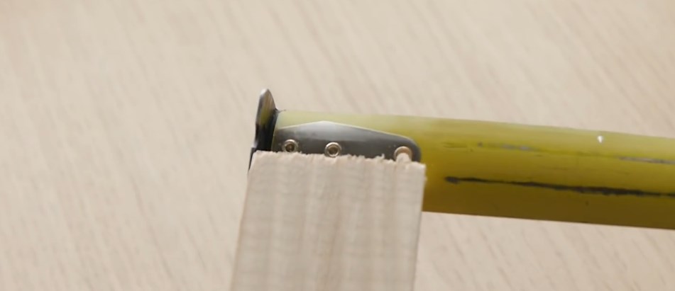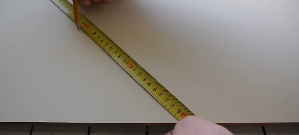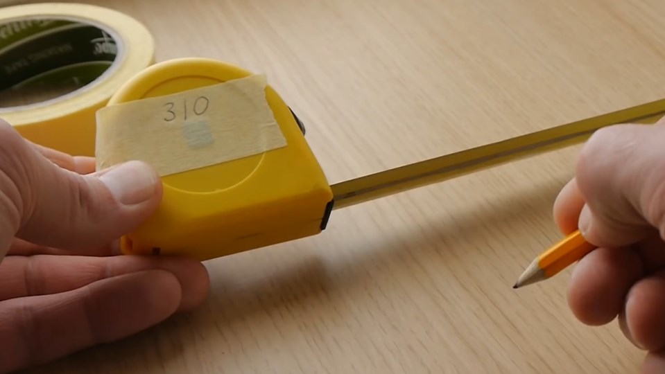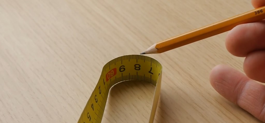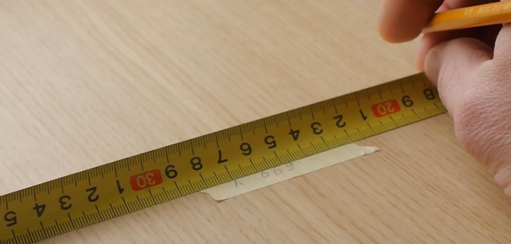 Sıfır ve 40 cm işaretleri tahta ile aynı hizada olacak şekilde mezurayı tahtaya uyguluyoruz. Her 10 cm'de bir mezuraya göre işaretler yapıyoruz ve herhangi bir hesaplama yapmadan istenilen işaretleri alıyoruz.