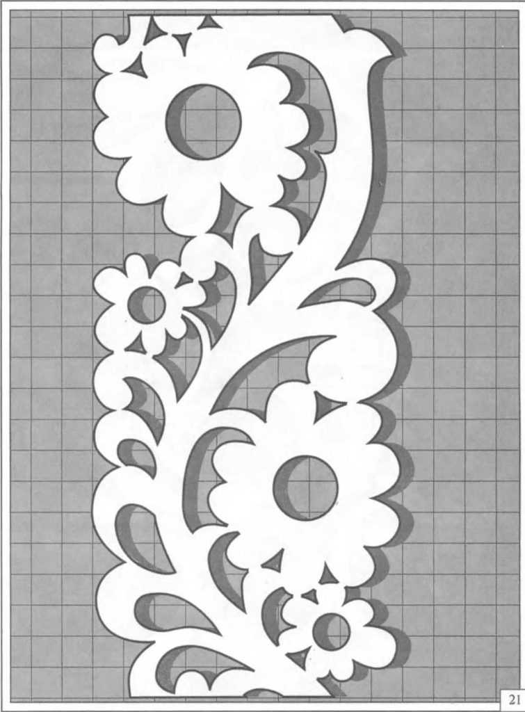 Çoğu zaman, bir çizim bir yazıcıda farklı sayfalara yazdırılır ve daha sonra önceki örnekte olduğu gibi bağlanır. İş ilk kez yapılıyorsa, çok karmaşık kalıplar almamalısınız. Ayrıca, iş yerinin aydınlatma ile donatılması, lambanın ışığının alttan krokiye yönlendirilmesi için gereklidir, aksi takdirde çalışması oldukça zor olacaktır.