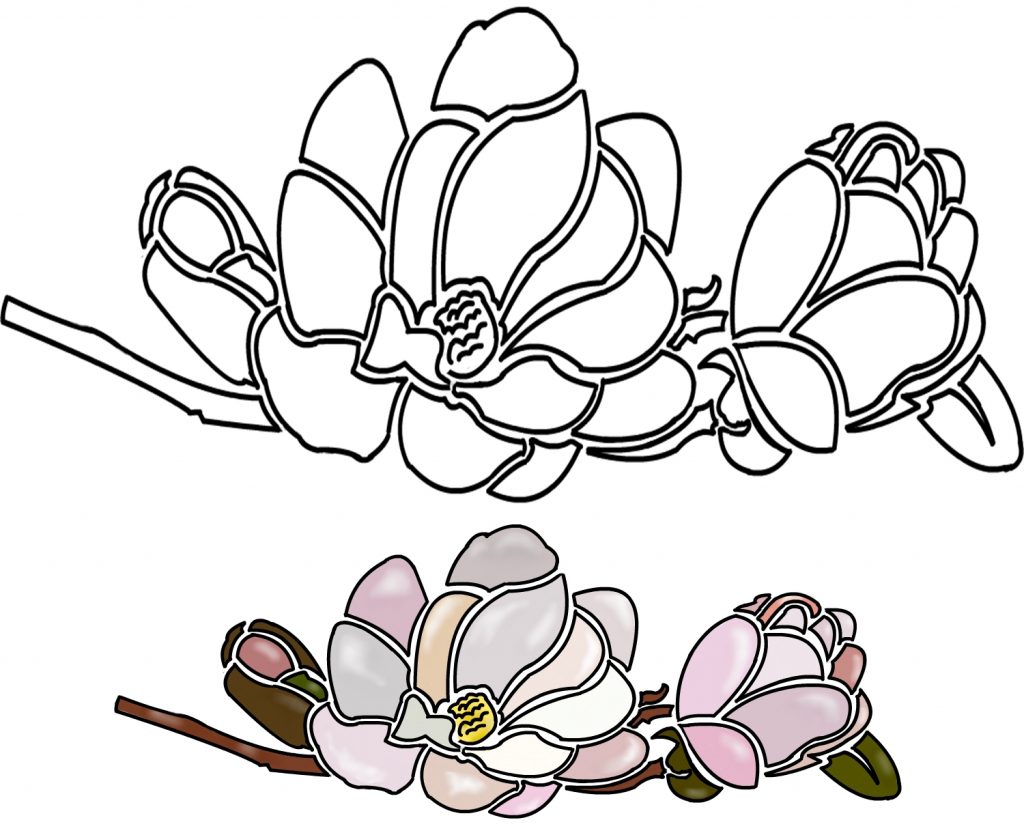 - Kontur kuruduktan sonra çizim renkli boyalarla doldurulur.