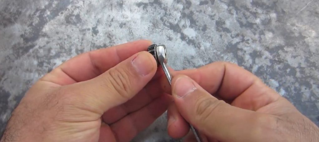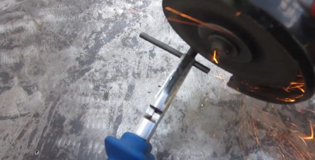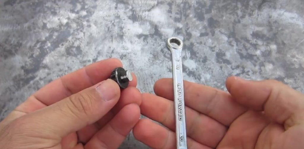 8 mm'lik bir anahtar alıyoruz ve kartuşu sabitlemek için kesilmiş tutamağa koyuyoruz.
