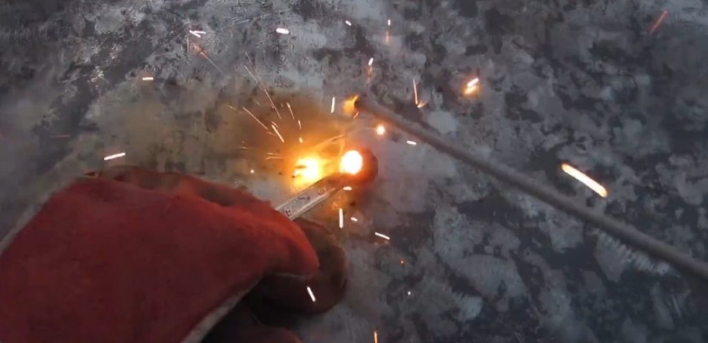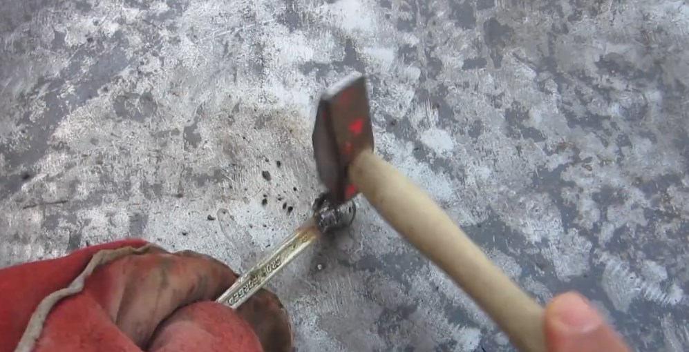 Kaynaklı parçaya bir çekiçle vuruyoruz - cürufu çıkarın.