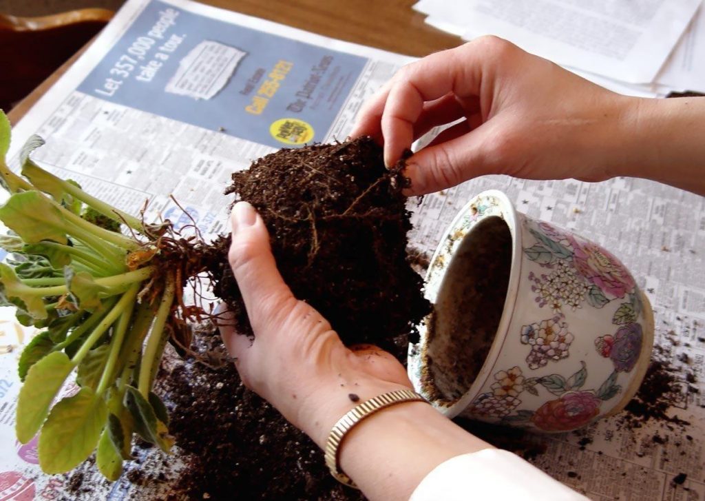 Bu, kırılgan genç bir ağacın sürgünlerine ve köküne zarar vermemeye çalışarak dikkatlice yapılmalıdır. Boşluklar taze toprakla doldurulur.